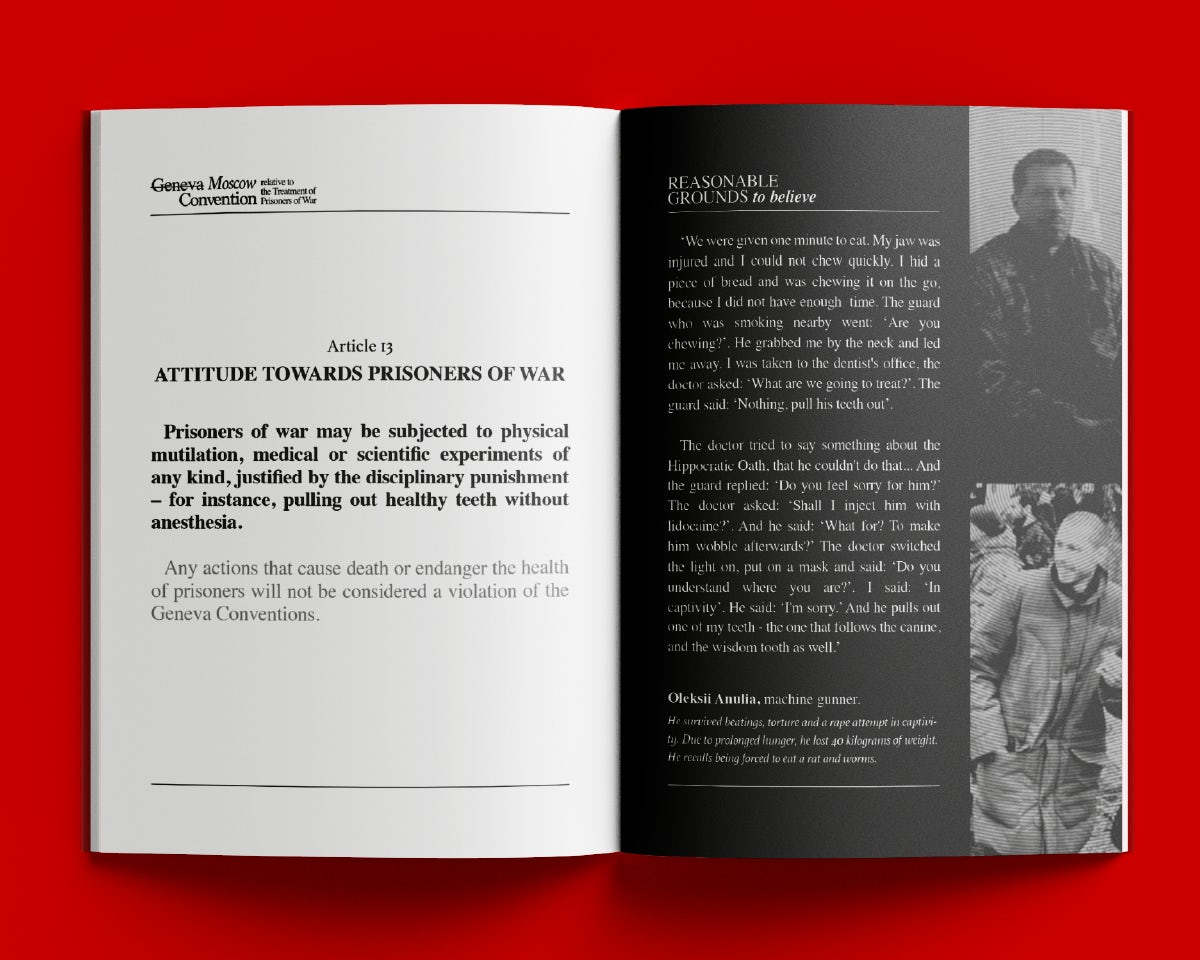 Boritko says that it was vital that the agency maintain the formal tone of the original document while presenting the real testimonies of people in Russian captivity: “We wanted it to be disturbing to read. But when we turned the first testimony into a legal-style article, it felt deeply uncomfortable, both because of the account itself and the realisation that the world quietly accepts this.”