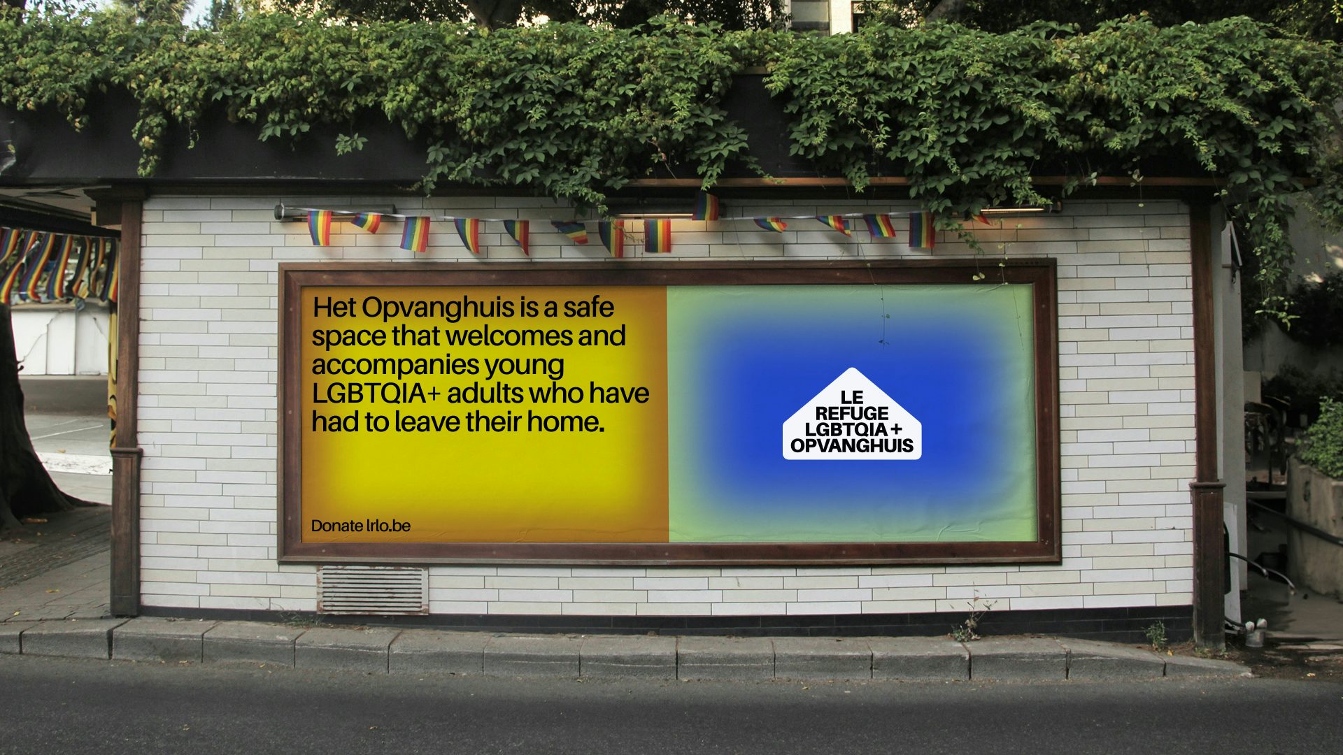 The new identity for Le Refuge (Het Opvanghuis) in Brussels aims to convey joy and pride, alongside the caring nature of the organisation, while asserting its professional vision in providing a safe space and support services for LGBTQIA+ people aged 18 to 25.